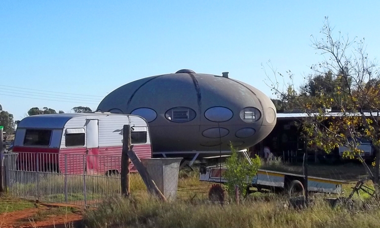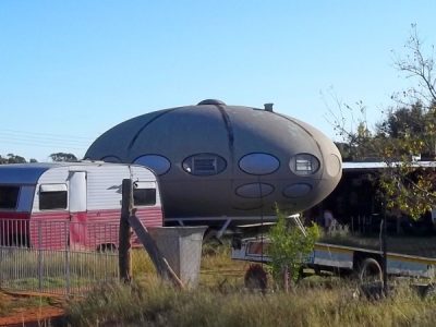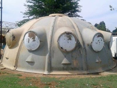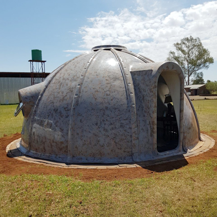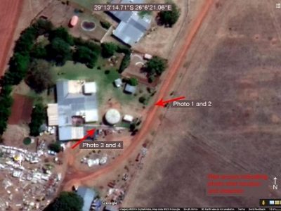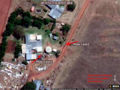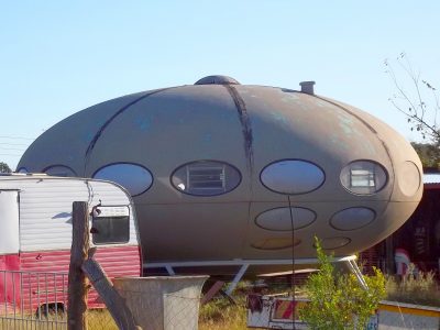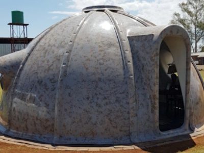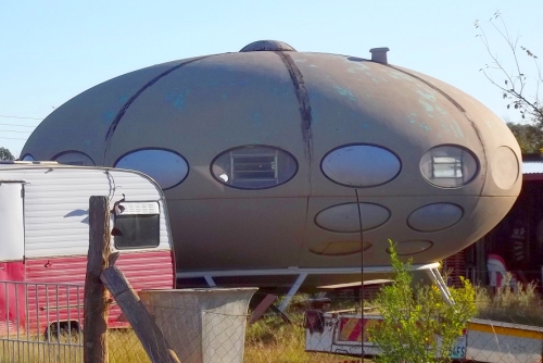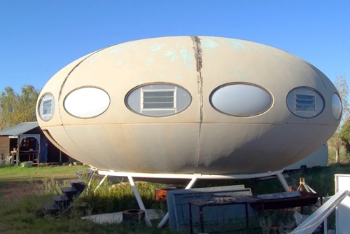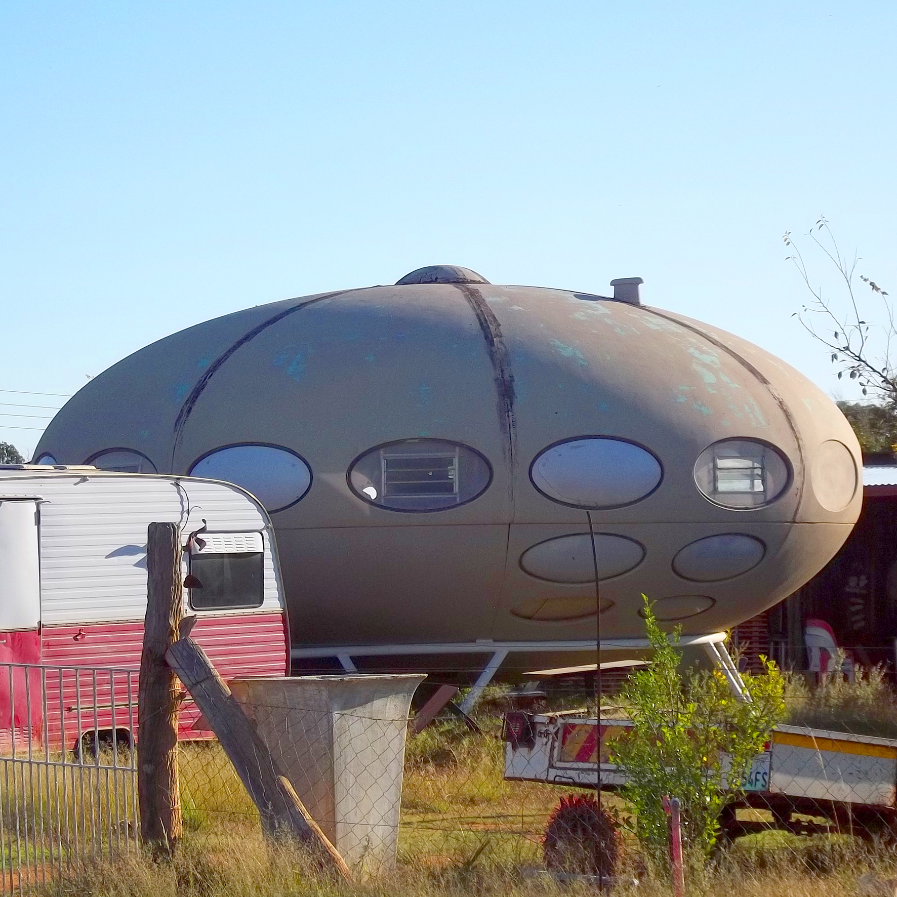 We received an email recently from Leon Reynolds in which he told us of a Futuro off R706 about 10 miles or so south west of Bloemfontein, South Africa. The Futuro is visible in Google Maps and Google Earth and is located at 29°13’14.71″S 26°6’21.06″E.