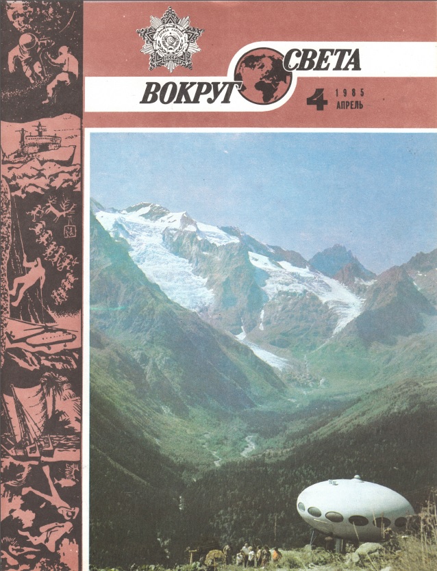 袙芯泻褉褍谐 小胁械褌邪 or «Around The World» is Russia’s oldest popular science and regional studies journal and, with a couple of breaks (1918-1927 & 1941-1945) has been published continuously since 1861. The April 1985 issue, #2535, featured this Futuro on the cover. A copy of the magazine in .pdf format can be downloaded here.