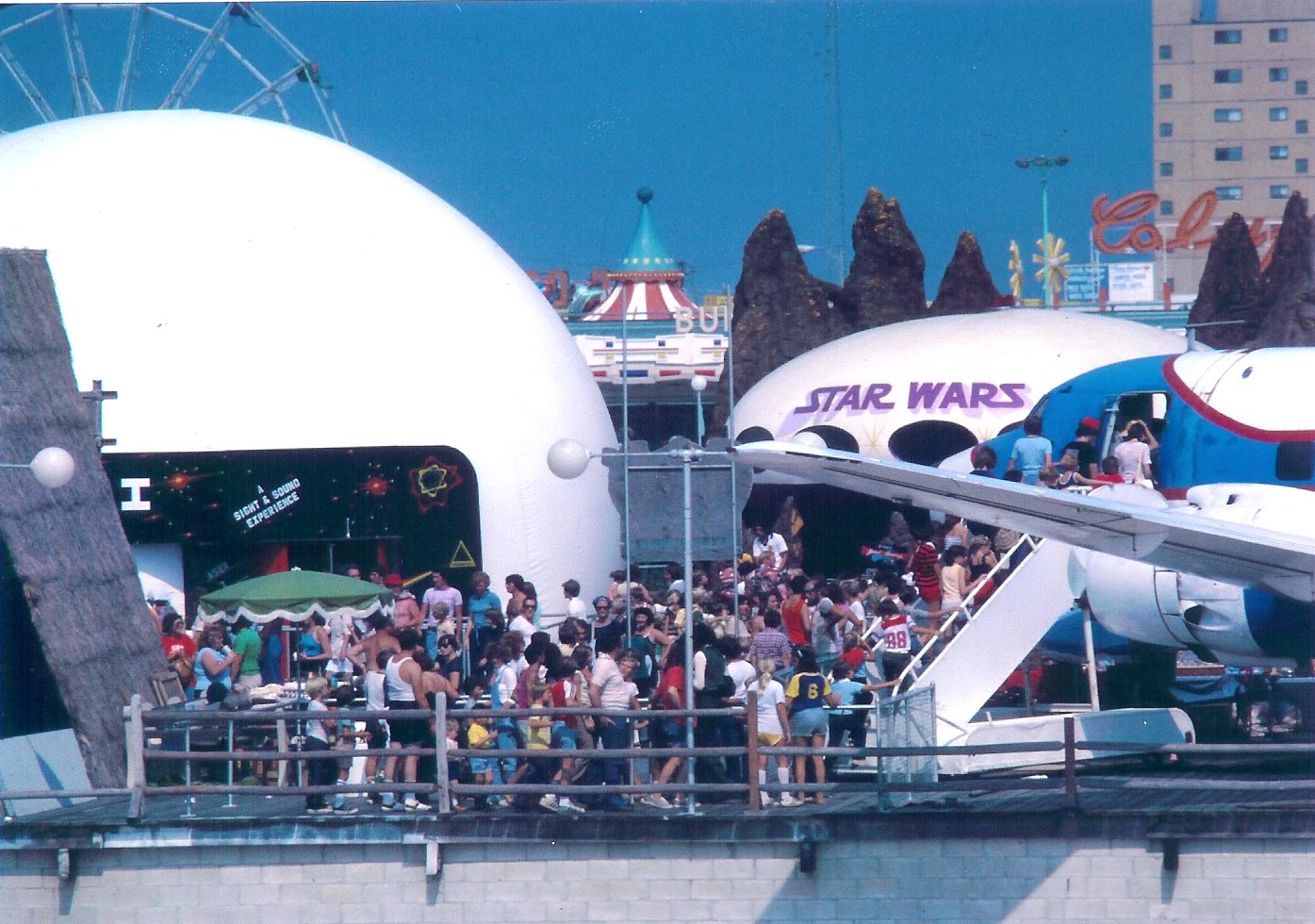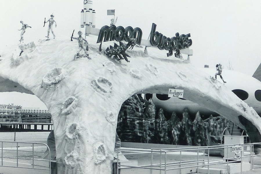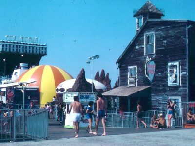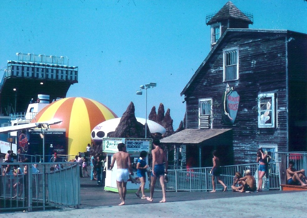 When we first saw this 12″ by 8″ 1978 photo we thought it showed this Futuro (or more accurately a small part of it) back in its days at Morey’s Pier in Wildwood, NJ and when we checked it against other photos of Morey’s Pier we were able to confirm that was the case so we added it to our collection of «Things Futuro».