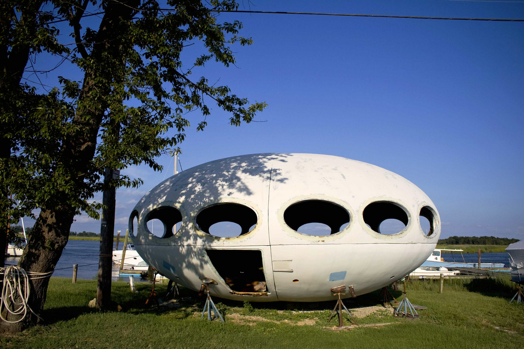 It appears that this Futuro is for sale. It is currently advertised on Craig’s List for sale as a «Futuro Home Shell» for $25,000. It is actually something we might actually be able to consider at that price though of course then there would be who knows how much to spend on transport and restoration. Have to give it a little thought. If anyone is interested you can call Scott on (609) 501-6627 — please respects Scott’s privacy — serious inquiries only.