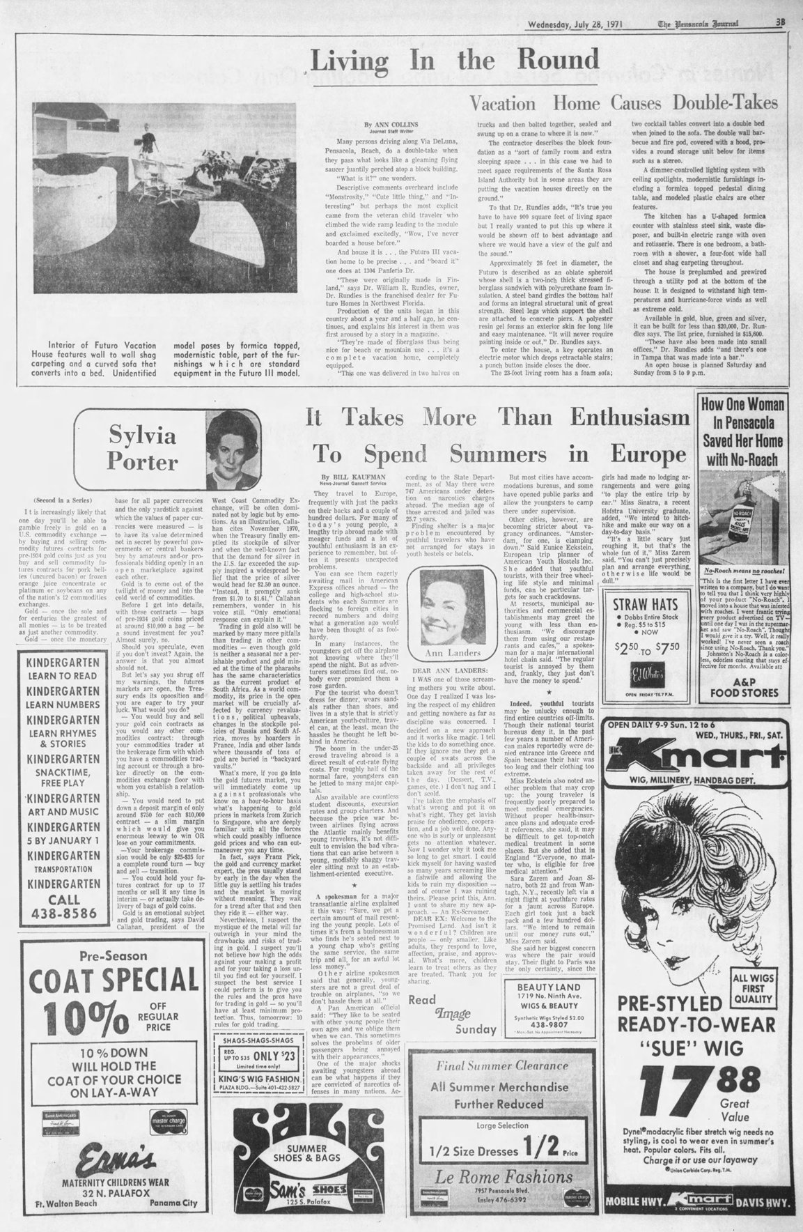 Florida based daily morning paper the Pensacola News Journal traces its heritage back to 1889 according to Wikipedia. The 072871 issue includes an interesting article on this Futuro House.