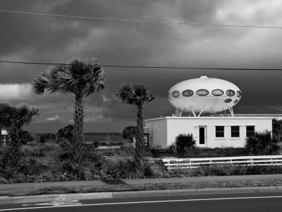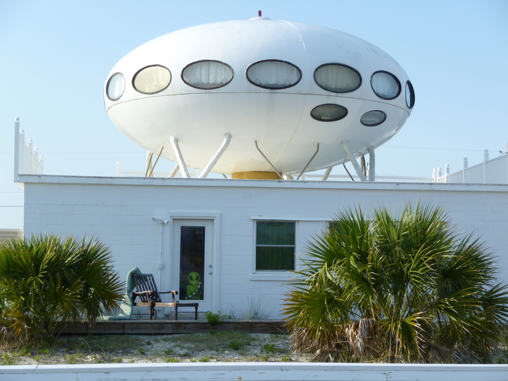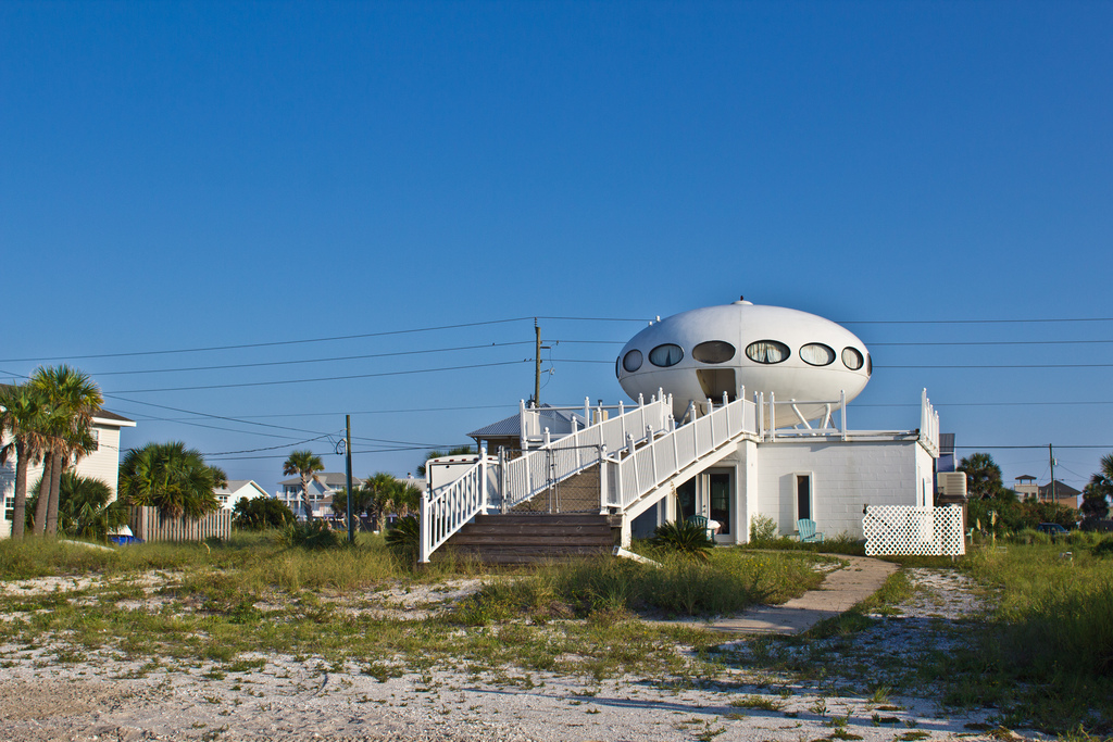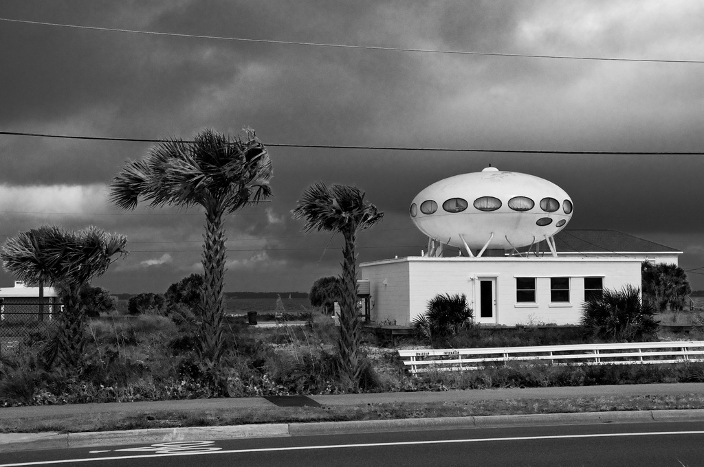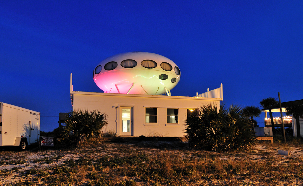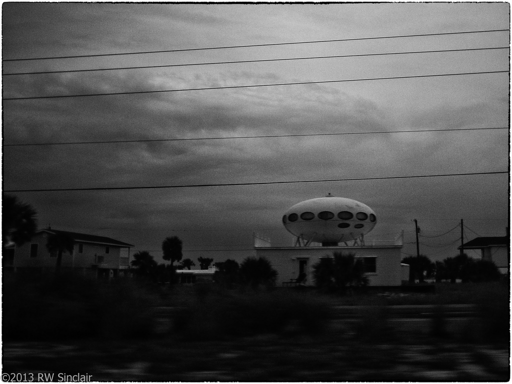 R.W. Sinclair snapped the photo below on what looks like a dark and stormy day in Florida confirming this Futuro remains on site as of 070513. The photo was posted to Flickr under CC 2.0.
