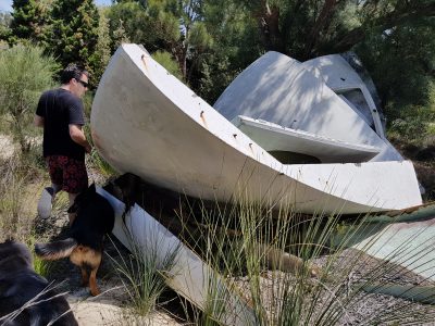 Shortly following the previous update we were contacted by Anthony Tran who visited the site at 32°09’13.2″S 115°46’31.6″E. Anthony sent us photographs which clearly showed a disassembled Futuro.