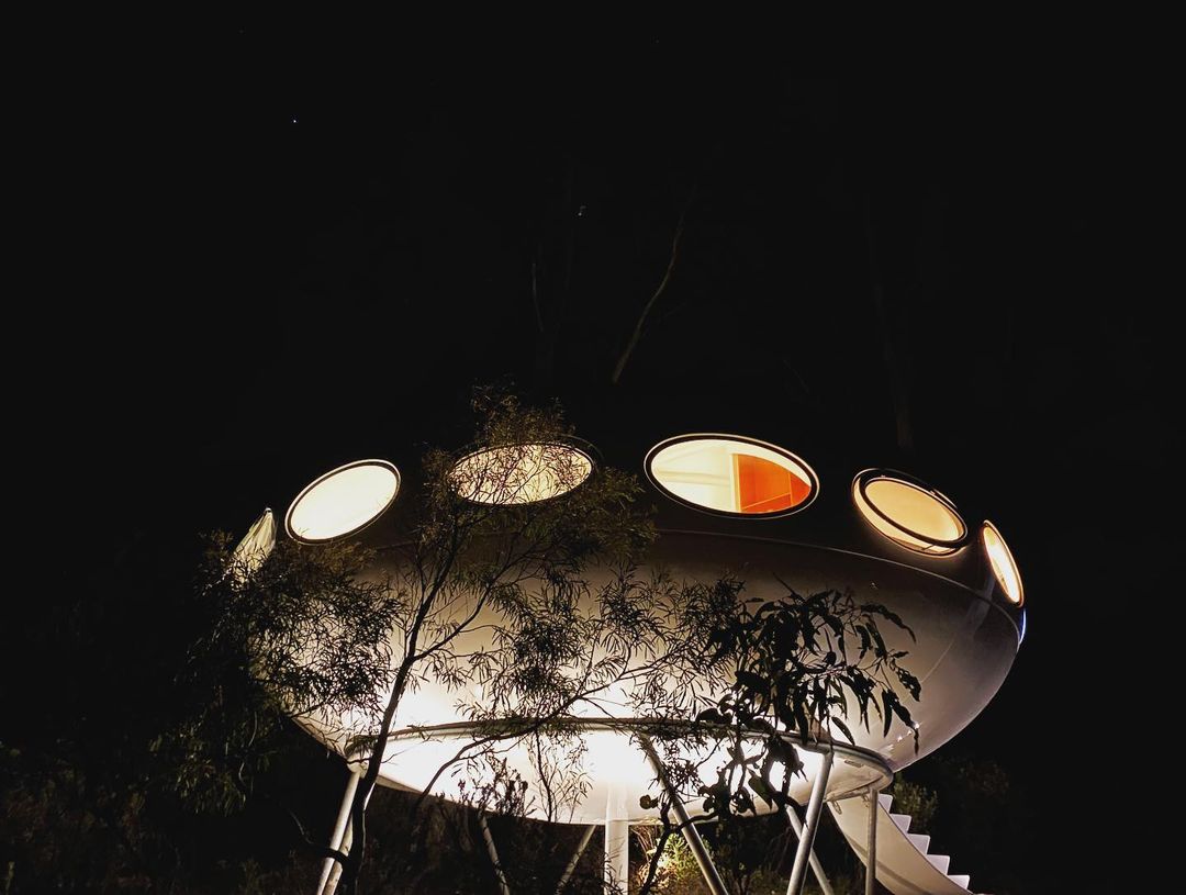 Futuros can be very photogenic, particularly at night, as we see in these two recent shots of this Futuro. The photos are by Emily Wood and her original photos can be found on Instagram here.