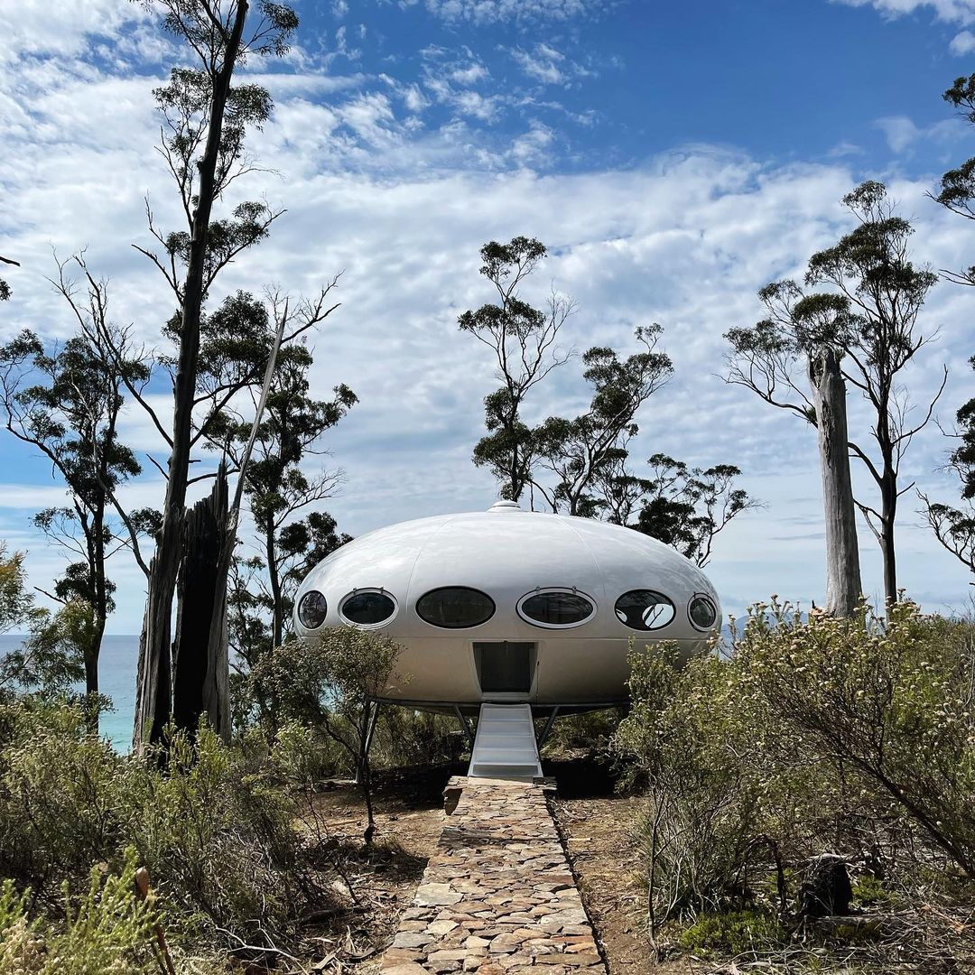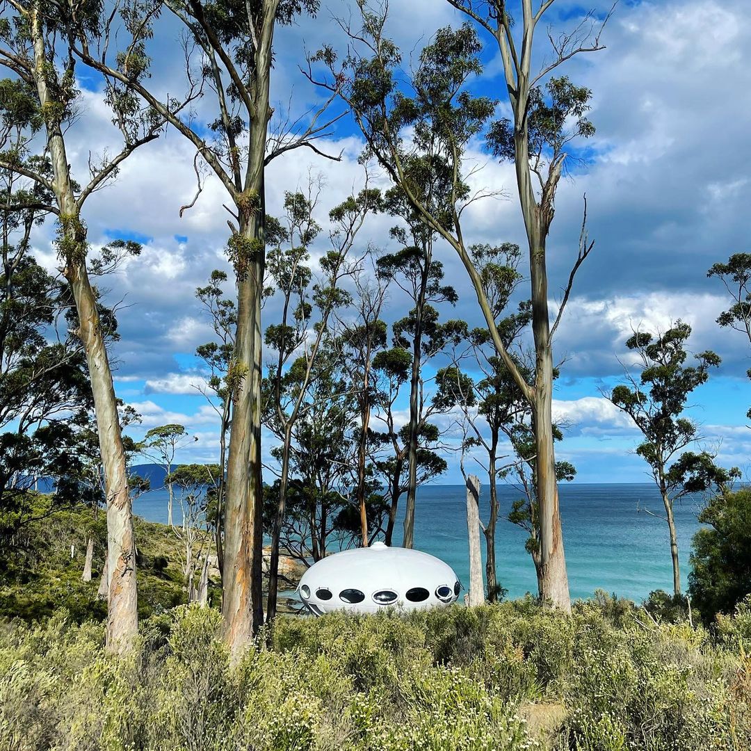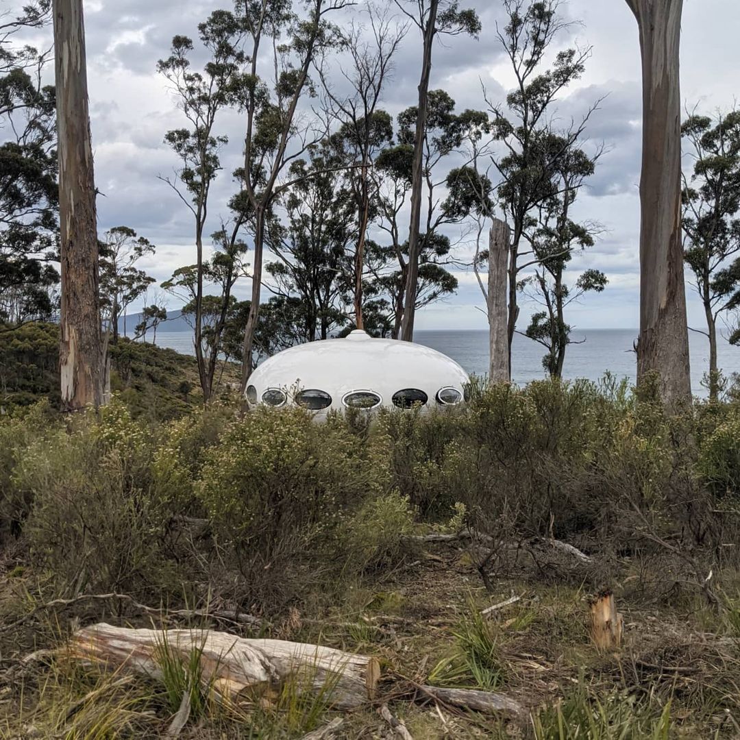 On 122221 we got our first look at this Futuro in its new home in Tasmania courtesy of Kirsha Kaechele. We have to say the setting looks idyllic! Then a few days later we got another nice exterior shot and also a look inside thanks to lady_emma_bugg who kindly shared these photos. Tha