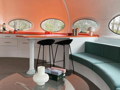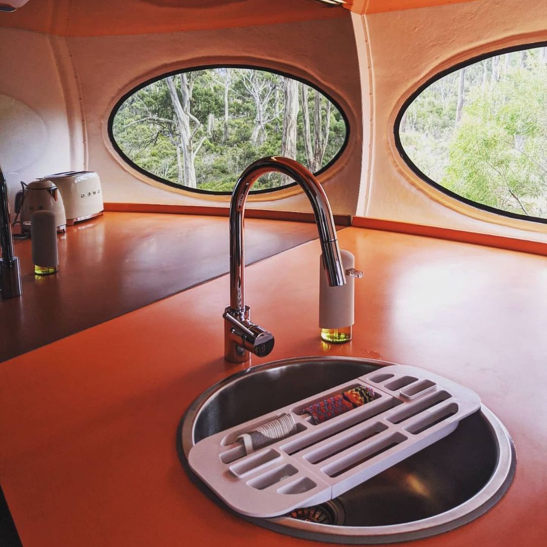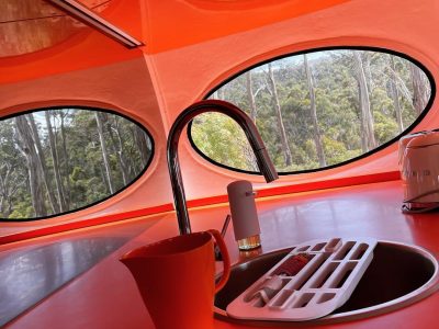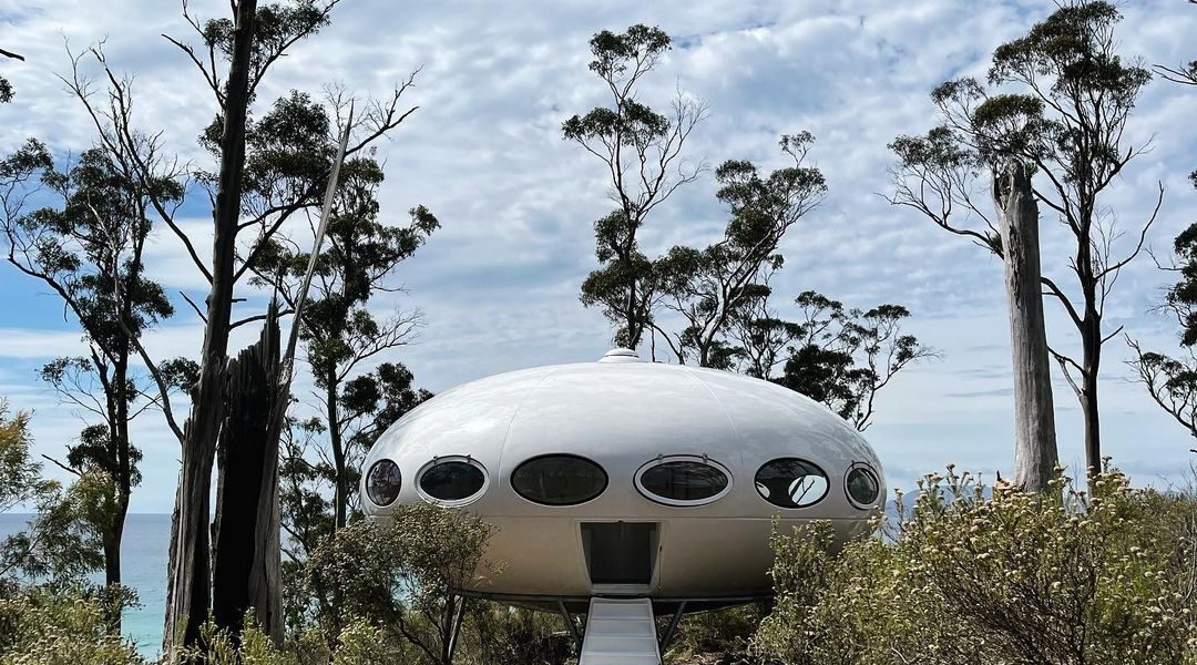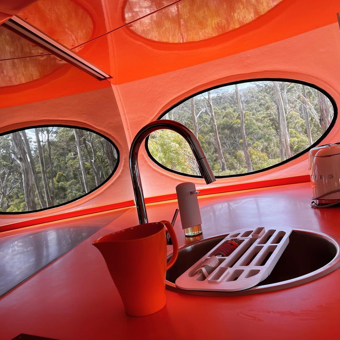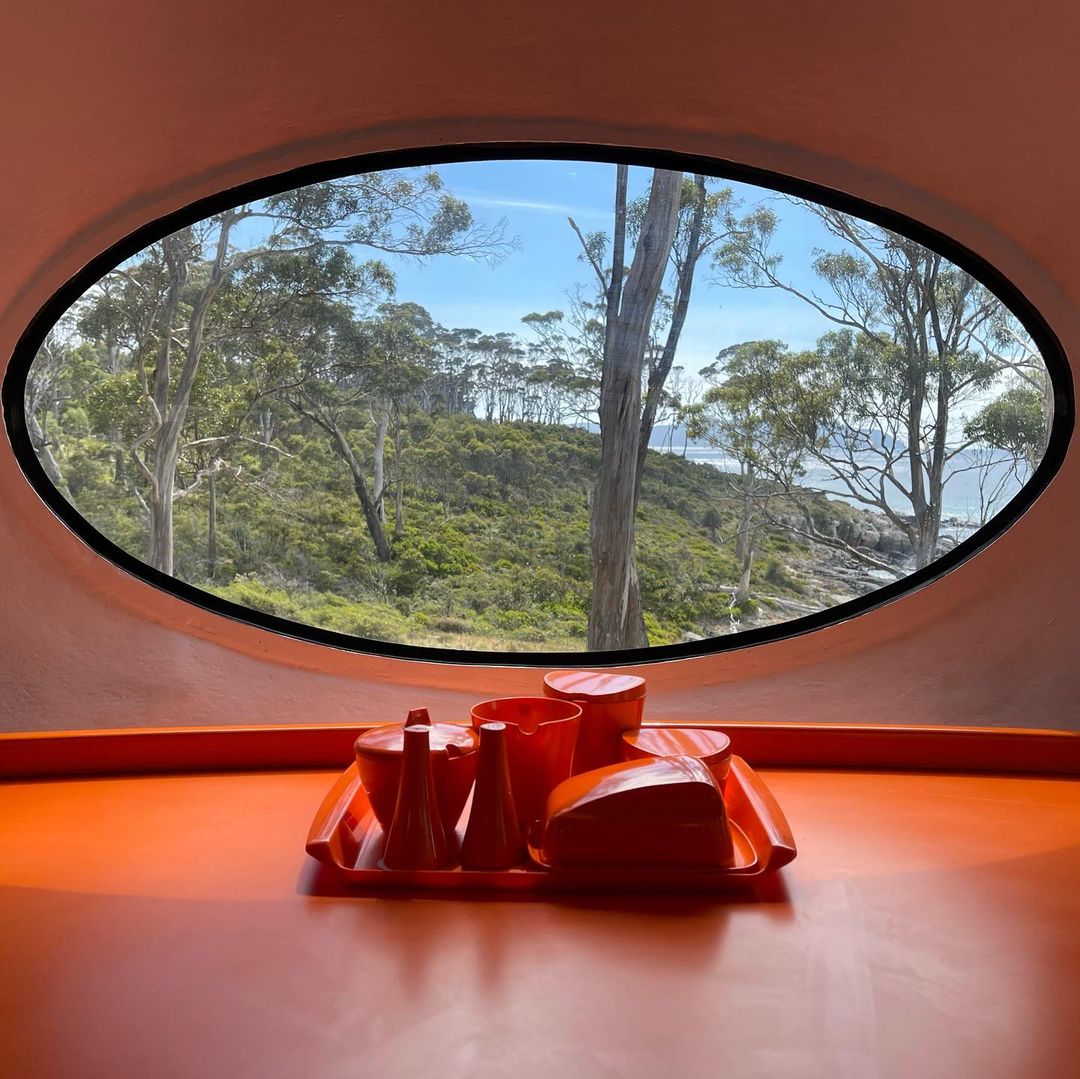 On 122221 we got our first look at this Futuro in its new home in Tasmania courtesy of Kirsha Kaechele. We have to say the setting looks idyllic! Then a few days later we got another nice exterior shot and also a look inside thanks to lady_emma_bugg who kindly shared these photos. Tha