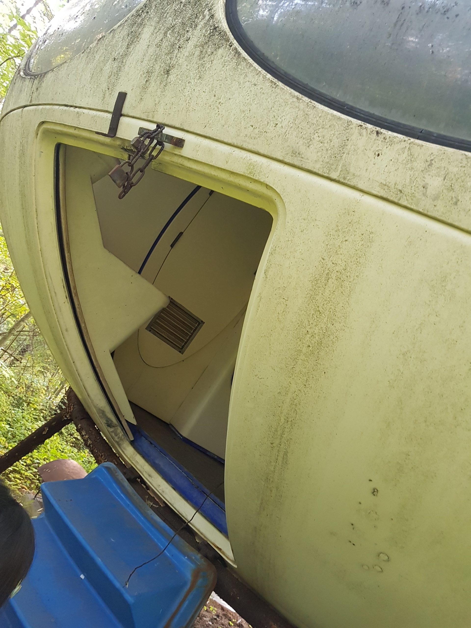 The urban exploration community seems to have latched onto this Futuro for the moment. This video is one of several that have started to appear; it was published to Youtube by Exploring With Josh on 101319.