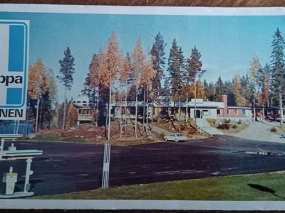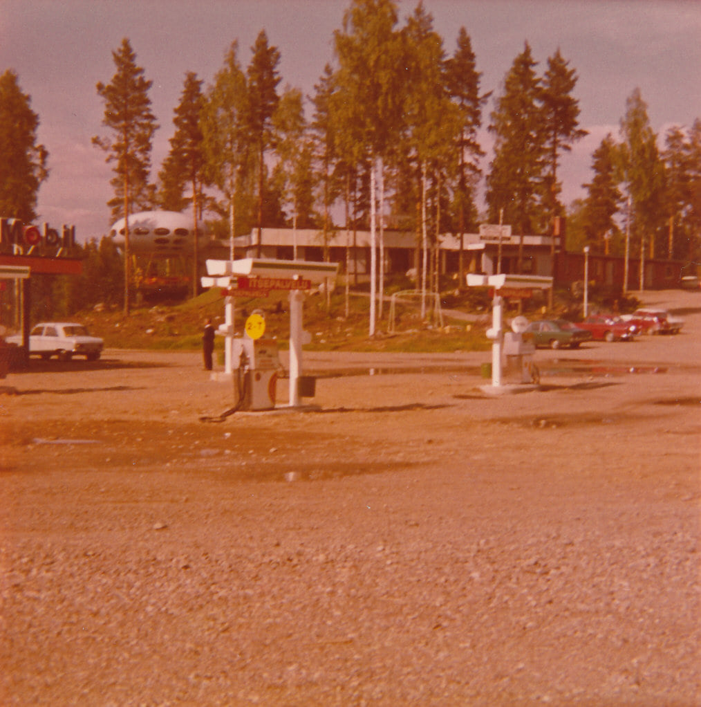 This interesting photo of an old motel brochure cover that clearly shows this Futuro during its stay in Kuhmoinen popped up on Facebook recently. The photo was posted to the group Vanhat kunnon huoltoasemat by Jukka Heinonen.