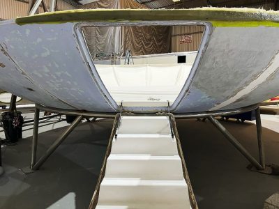 In one recent post we learn that «America’s Cup yacht designer Phil Kaiko is turning his hand to the restoration of the Futuro Perth» and in another we are told that «restoration is underway, starting with repairing the fiberglass shell and now moving to the interior».
