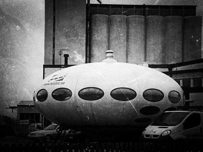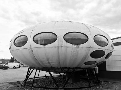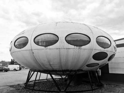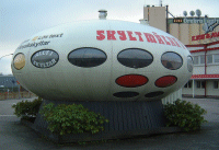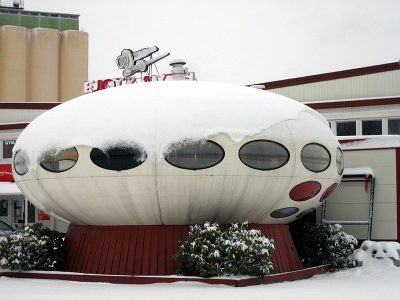 Interestingly the English translation of the Swedish word «tefatet» is «saucer». In addition if you look at the Tefatet Website you will see that the company logo is a representation of a Futuro (you can see the logo on the picture of the Futuro on their site or in the Google Maps «Street View» by zooming in on the Futuro). We can find no reports of how long the Futuro has been on site or owne