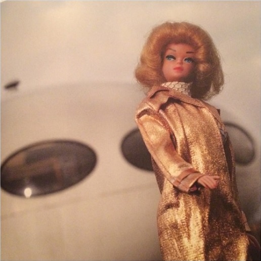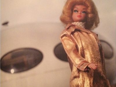 «… Barbie älskar Sverige. The spaceship is Matti Suuronen’s portable «cottage» Futuro, designed in 1968, situated in countryside Sweden.»
