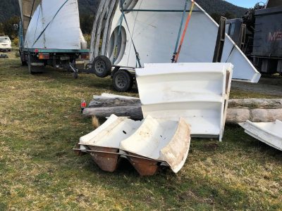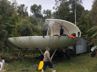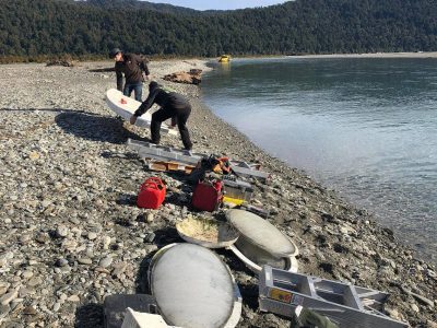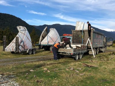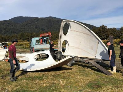 In an email we received yesterday from Nick McQuoid we learned there was a Futuro, accessible only by boat, located somewhere around the mouth of the Paringa River in the West Coast Region of New Zealand’s South Island. After a little time in Google Maps, Google Earth and Bing Maps we were able to pinpoint the Futuros location at 43°38’25.10″S 169°26’13.35″E.