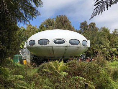 Back in 2013 Nick McQuoid told us about a Futuro reported to be located somewhere around the mouth of the Paringa River in the West Coast Region of New Zealand’s South Island and it was relatively easy to find it in Google Maps. However until now we had never come across a single photo of the unit.