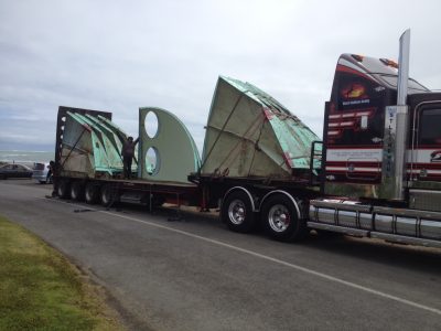 The Raglan Futuro has now been moved to Christchurch where it will be restored by owner Tim Hoban. The photos below show the Futuro being disassembled 102715, transported to Christchurch and in storage in a disassembled state in its new «temporary» home. Tim tells us that he and a group of four volunteers who: