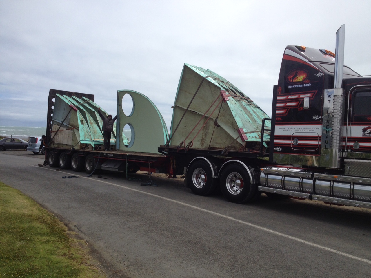 «started early on Tuesday morning and by a late lunchtime had all the top sections off and stacked ready for transport. Spent the rest of the day unbolting and separating the lower sectio