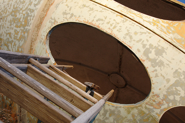When I posted photos taken during my last visit to this Futuro on 061314 I mentioned a small pipe and vent that, for me, was a puzzle; I simply could not figure out its purpose. That mystery was solved for me this week by Eric Ritchie who emailed me a few days ago. Eric wrote:
