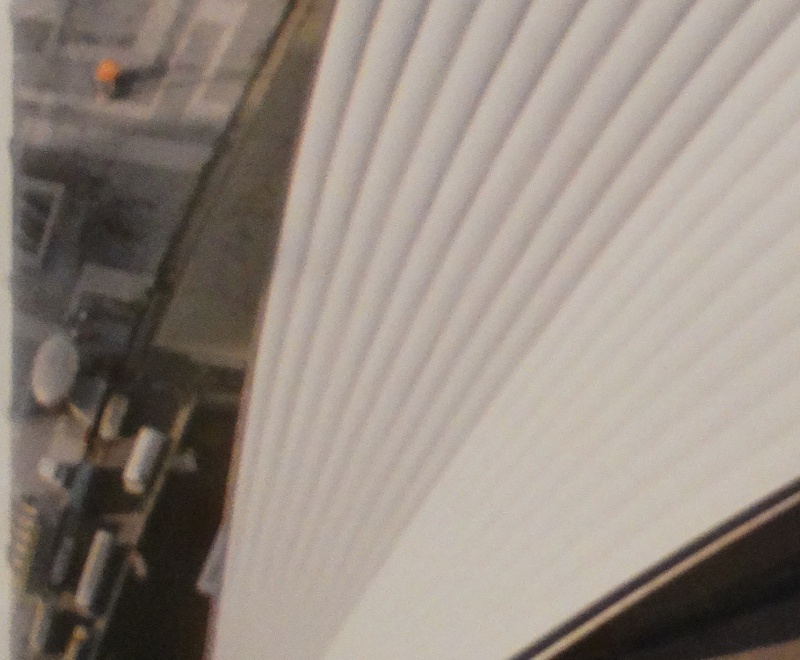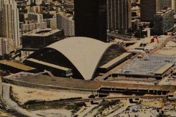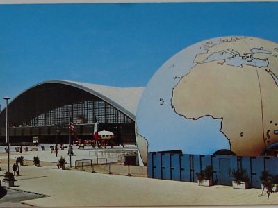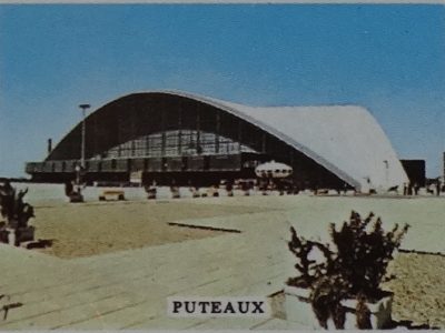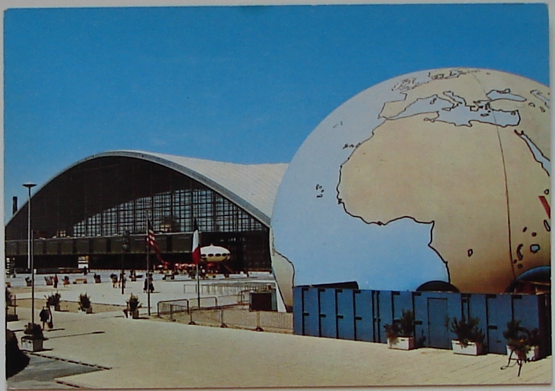 This week we added another postcard showing this Futuro back in its «CNIT days» to our collection of «Things Futuro». In this case you do need extremely good eyes or a magnifying glass to actually see the Futuro. The CNIT is left center of the postcard with the Futuro just visible to the right of the CNIT. The second image below is a closer view of this area of the postcard where the Futuro is a little clearer.