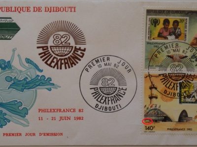 A number of first day covers and other philately related items associated with PhilexFrance82 featured this Futuro which was located outside the CNIT at the time and we recently added several such items to our collection of «Things Futuro». The items below are (from top to bottom):