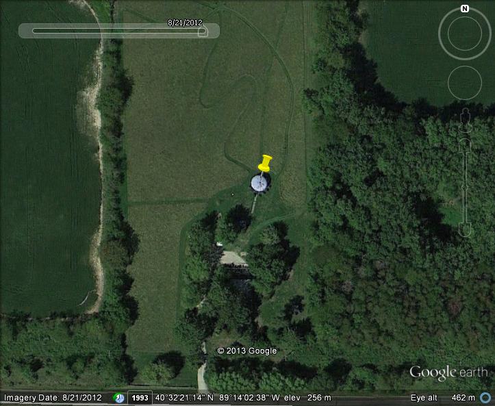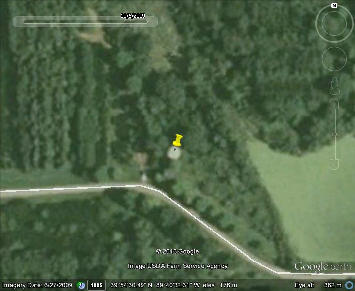 During research into the Futuro located in Livingston, IL it became apparent that it had previously been located somewhere on Route 29 north of Springfield, Illinois. Now we know that it is no longer there but the «detective» in us was still interested in establishing precisely where it had been located. A Roadside America article quotes Jolynn Brubaker, who photographed the Futuro on Route 29, as follows: