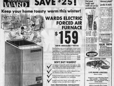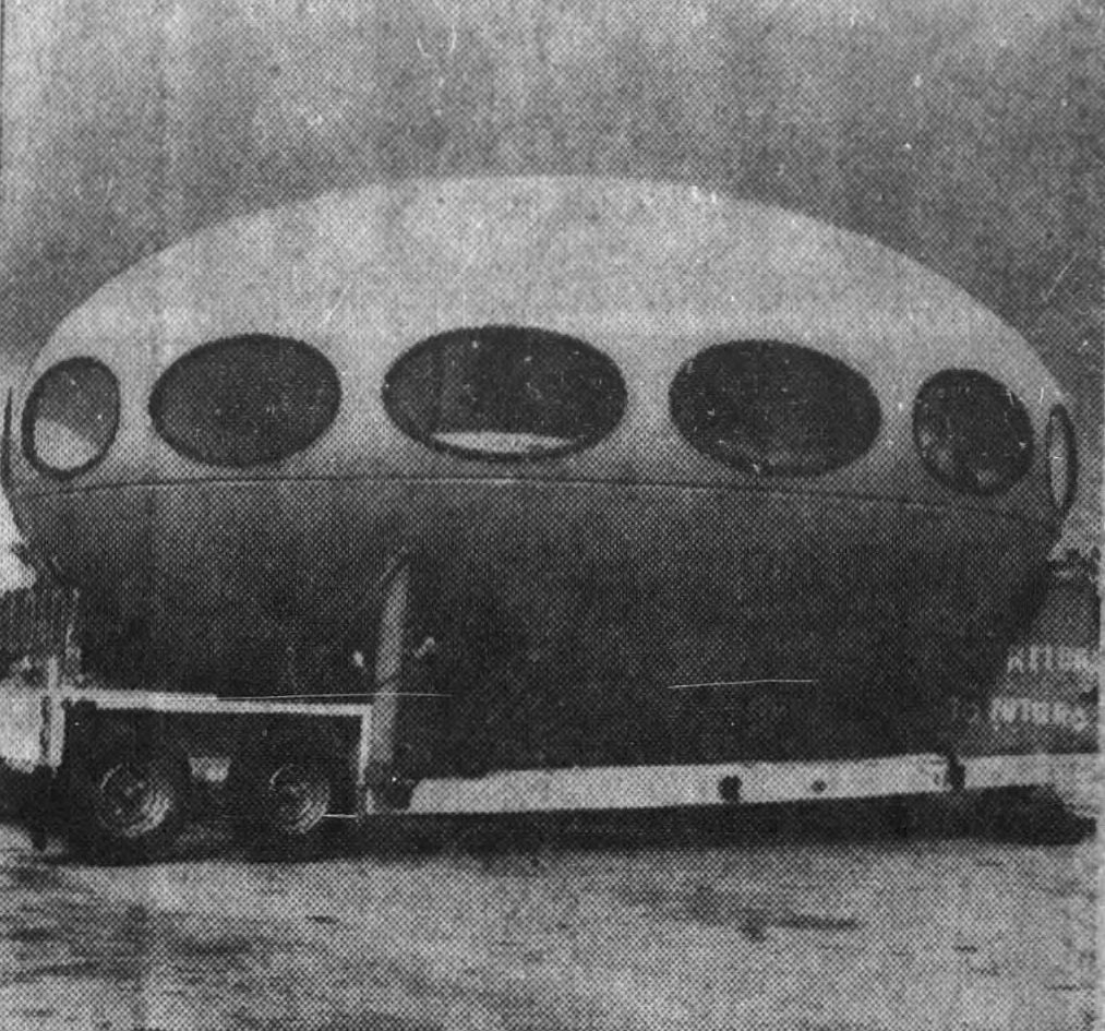 The 103070 issue of The Tampa Times carried a short article along with a photo of a fully assembled Futuro (described not as a Futuro but as a «contraption») sitting on a flat bed truck in a parking lot on N. Dale Mabry Hwy.