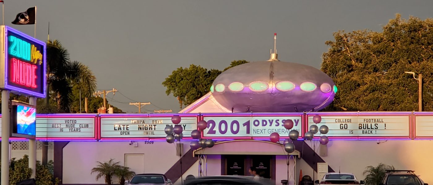 For the most part we am not much for gambling; sure we enjoy a trip to Las Vegas and might play the slots a little but that’s about it. However, if we were big time gamblers we would wager a month’s salary that the Futuro on N. Dale Mabry Hwy in Tampa, Florida is the only one in the world that gets a mention or two on WorldSexGuide.com. According to a forum post in a thread entitled «Tampa Strip Clubs» that referenced the club «2001 Nude Odyssey» we read: