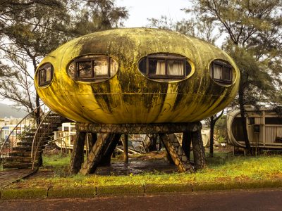 This video, titled «Abandoned UFO houses (Futuro House Clone) in Taiwan», includes some great drone footage of the Wanli site. It was posted to Youtube by Corey Wong 101519.