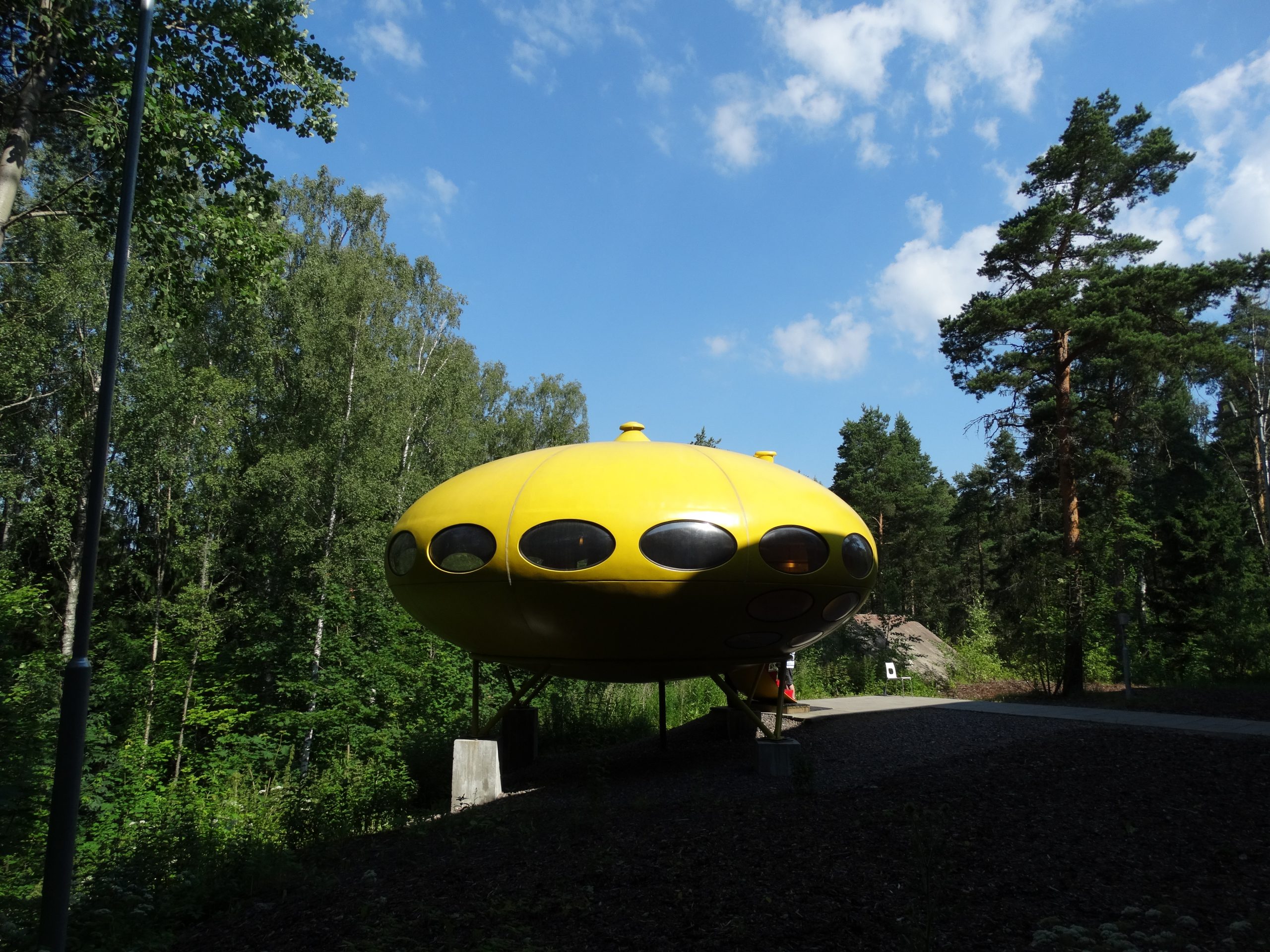 Futuro #001 has been owned by TV celebrity Matti Kuusla since its manufacture. It is worth noting that despite #001 numbering this was not the first Futuro manufactured — the prototype was #000 and that Futuro has been fully restored and is on display at the Museum Boijmans Van Beuningen in Rotterdam, Netherlands. The Futuro has spent its life on a lakeside property in Hirvensalmi where, mainly because it has never had an electrical supply, it has been only used in a very limited way.