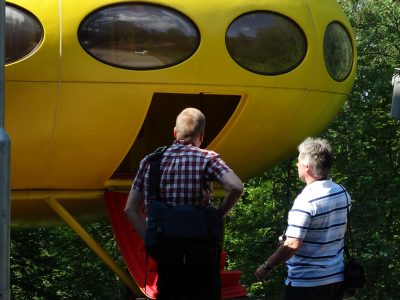 On 070814 we were fortunate enough to be able to visit Futuro #001 at the WeeGee Exhibition Center. Not only were we fortunate enough to be able to visit the Futuro but in addition we were also able to visit with Marko Home, Futuro historian and editor of the book Futuro: Tomorrow’s House from Yesterday.
